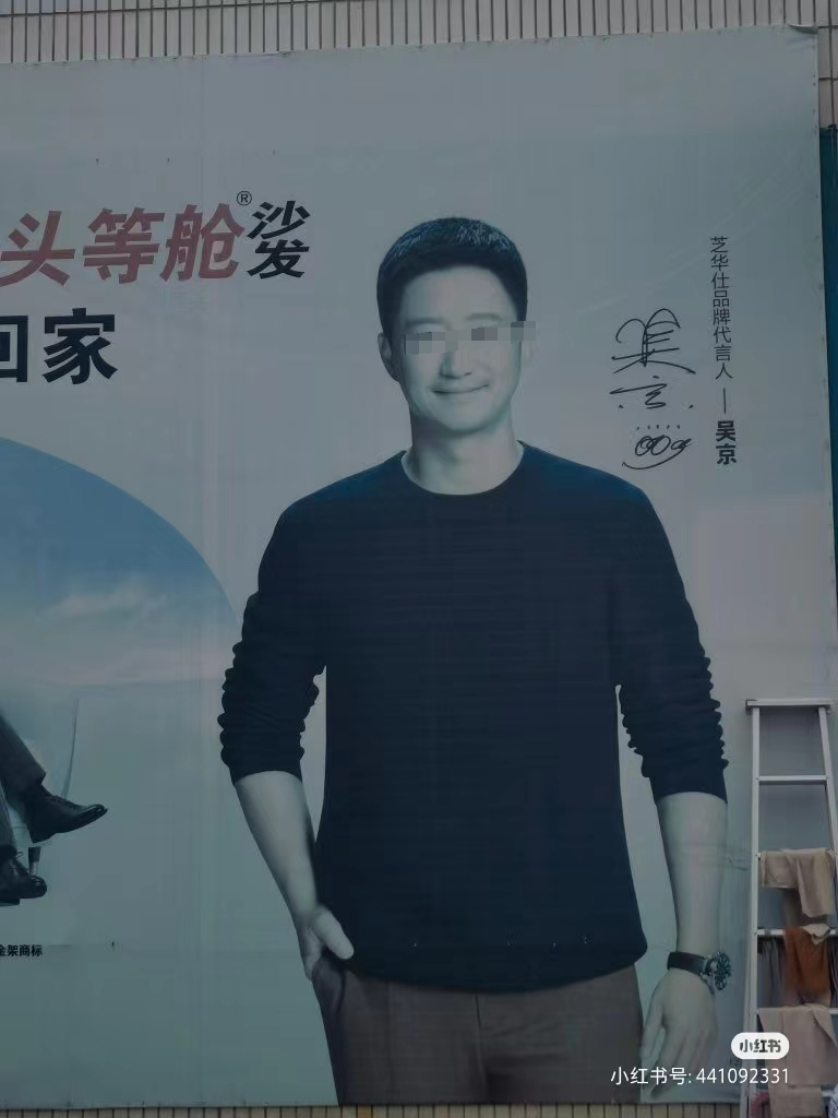 原来最近家具品牌芝华仕,做了一场直播,结果女主播不小心开了美颜,把背景墙的吴京直接一键美颜了。