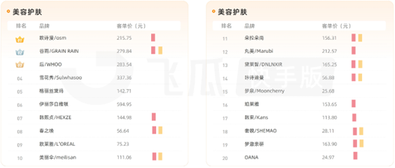 图:8月短视频电商美妆品牌榜,来源:飞瓜数据,锦缎整理(标红为国货,标黄为互联网原生或成立不足十年品牌)