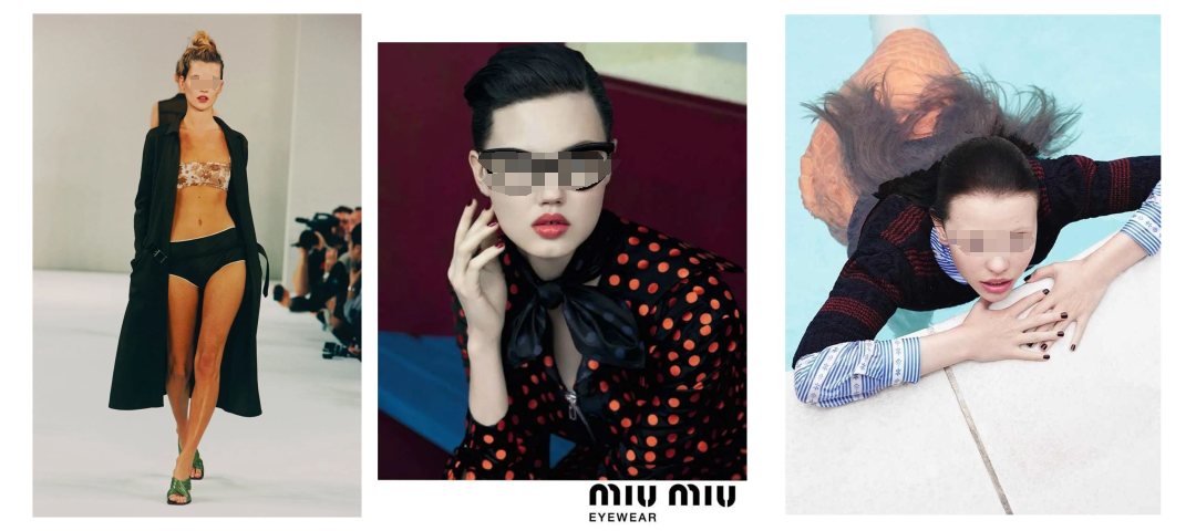 自创立起,MiuMiu偏爱契合怪异少女性格的“同类人”,比如Kate Moss、“猪妹”Lindsey Wixson、“恐怖片女王”Mia Goth,无一不是天马行空、鬼马精灵的性格特色,选拔标准高度统一。