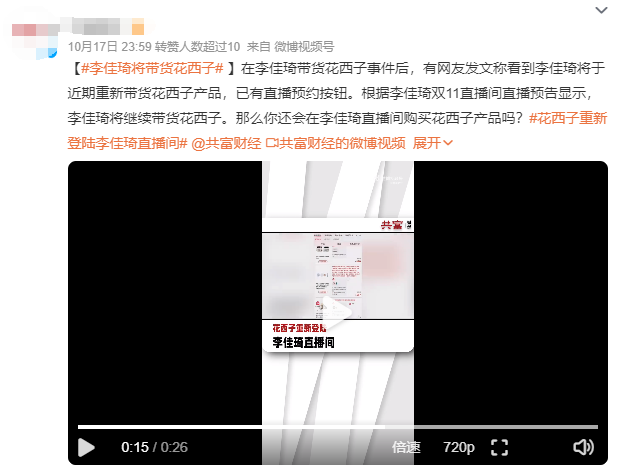 不如趁着双十一前把带货花西子的预告放出来,再蹭一波热度,收割一波流量,算盘打的简直完美。