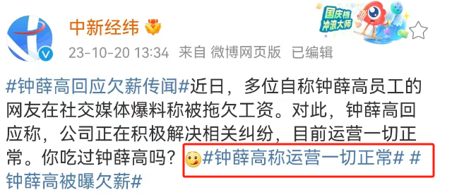 首先恭喜钟薛高,终于不是因为“雪糕刺客”上热搜,而是“欠薪刺客”。