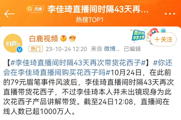 李佳琦居然继续带货花西子,印证了一句话:没有永远的敌人,只有永远的利益。