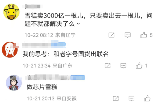 凑热闹不嫌事大的网友,给出N种反转大招,建议钟哥考虑下:卖亿点点贵的雪糕、和国货出联名、做芯片雪糕。