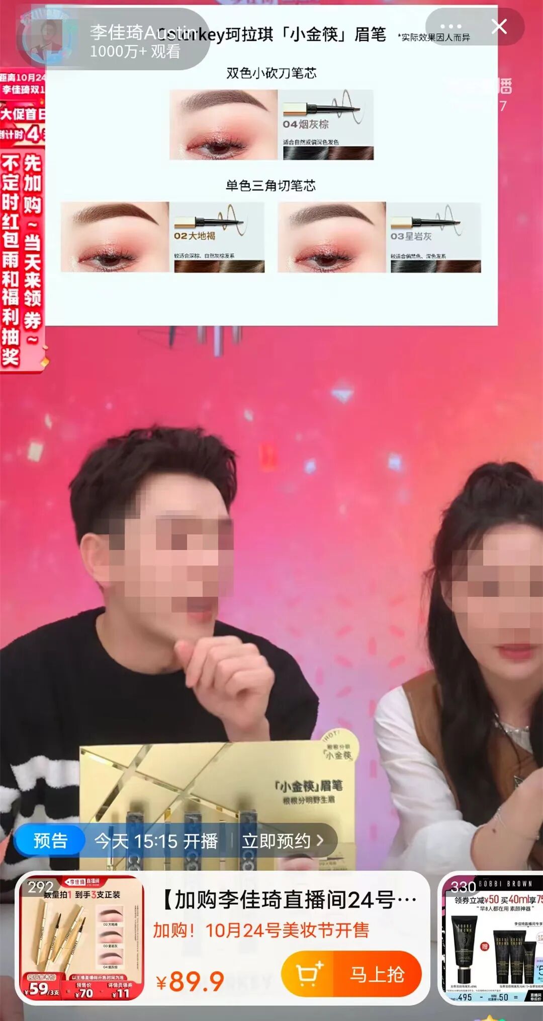 李佳琦也在不断寻找“新欢”,或是跟夸迪联手拍宣传片,或是力捧Colorkey珂拉琪眉笔,希望能再推出一个品牌创造销量神话,稳住自己“一哥”的位置。