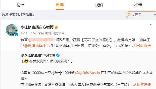 花西子的今年offer,既不在李佳琦置顶的攻略长图里,也没出现在他直播官博的爆品剧透里。