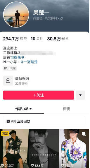 最后,则是借热门话题的东风。虽然可遇不可求,但抓住就是飞升。比如跟《封神》男演员有纠葛的吴楚一,如今置顶的视频,都跟LV有关了。