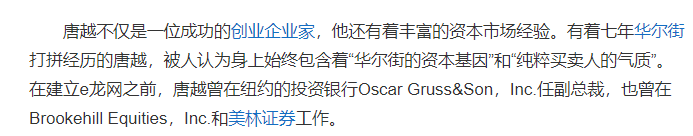 而这里面就大概率有汪峰的手笔,因为汪峰有一个好友——唐越,恰好很擅长投资、科技方面。曾职于美林证券从事证券研究及销售工作,是蓝山中国资本创始合伙人、小赢科技创始人、董事长、CEO。