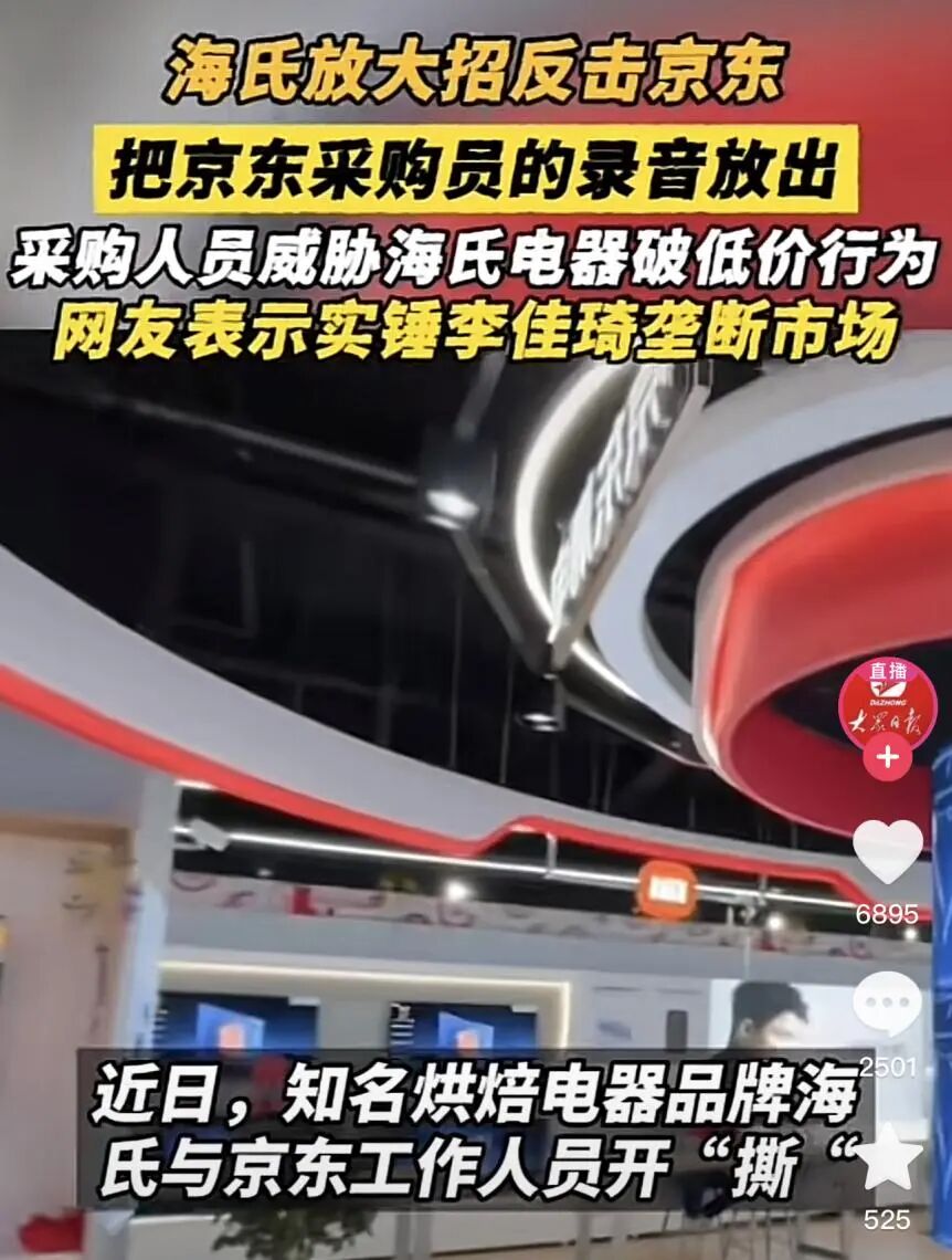 毕竟此前京东和海氏电器之间的公开喊话,就曝出了李佳琦挟持商家签订“底价协议”、“二选一”等行为。这次选择曝光和采销人员之间的通话录音,显然海氏电器也是要和京东撕破脸了。