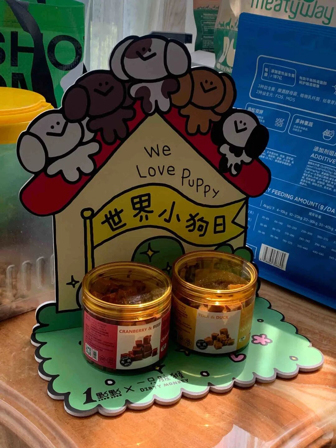 比如在国际小狗日,一点点联名插画师制作了可爱的小狗周边。