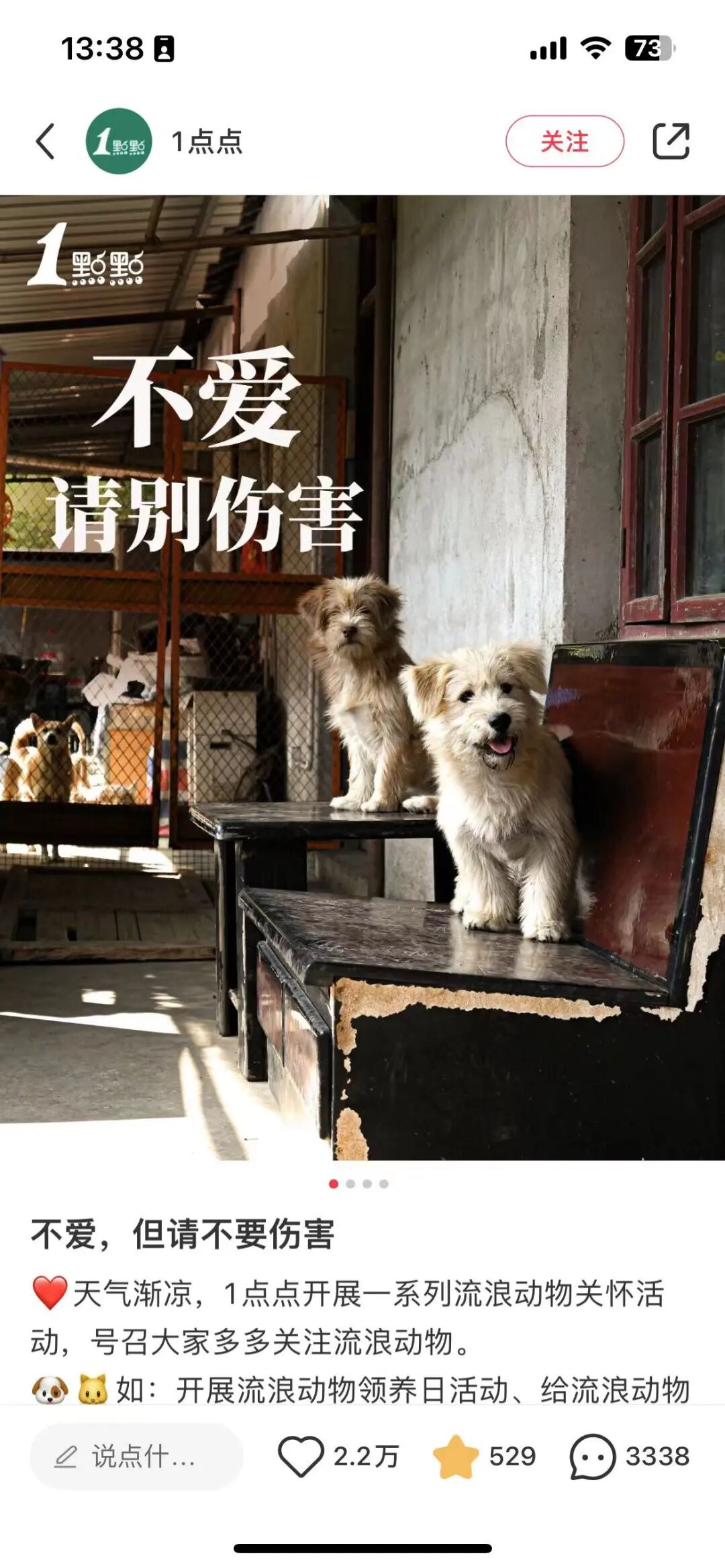 然后有个女生说希望多关爱流浪动物,所以一点点就开始做了,且是在捕杀流浪小狗之前的事。