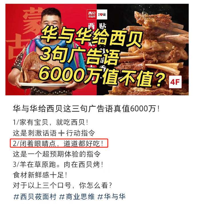 要知道当初华与华为西贝策划这句口号,就是想要降低消费者决策。