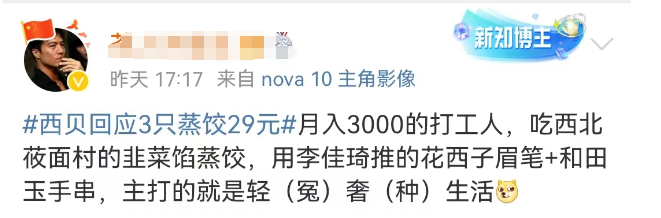 虽说隔行如隔山,但西贝之所以被调侃西字辈,主要还是拿了花西子的剧本。