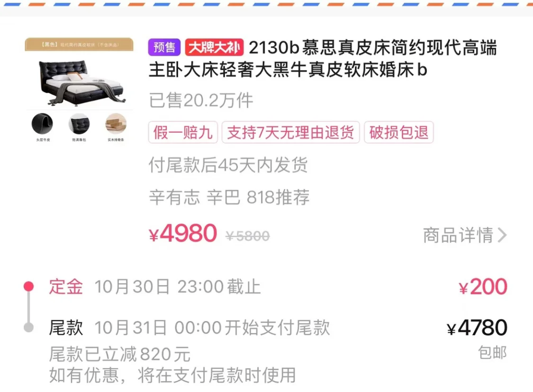 前几天慕思找辛巴带货,一款原价高达近1.5万(有说是近2万元)的床垫,膝斩至4980元,便宜近10000元!
