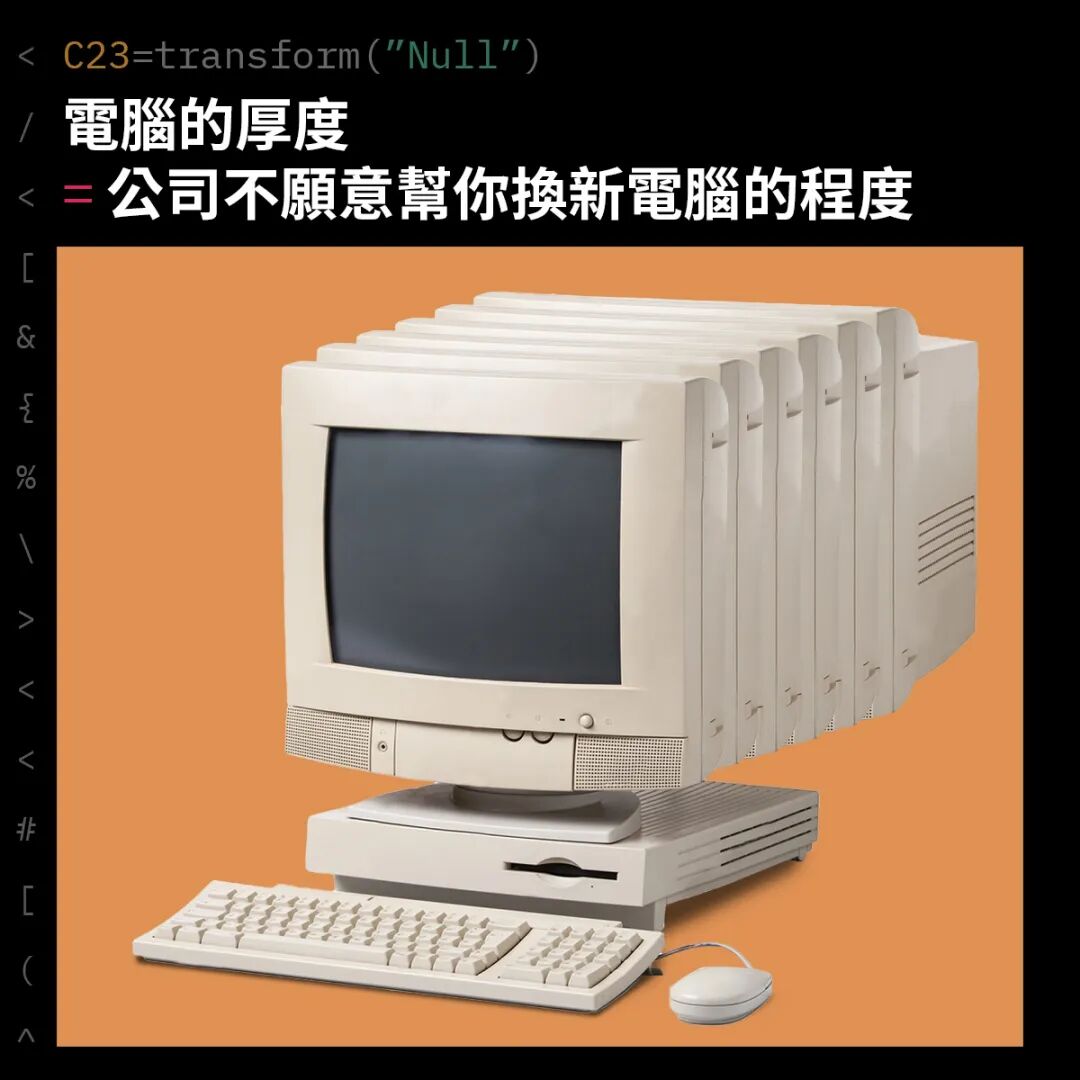 电脑的厚度=公司不愿意帮你换新电脑的程度。