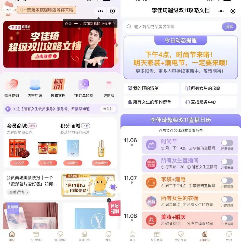 在平台方面,美ONE打造了“所有女生会员服务中心”的私域流量池,此前还做过“鲸选会”的购物小程序,避免将所有鸡蛋放在淘宝直播的篮子里。