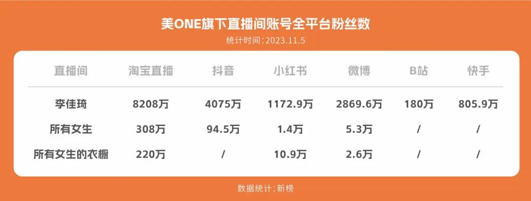 美ONE官网公开信息显示,全网覆盖用户数超过1.7亿,其中绝大部分来自李佳琦个人的全平台账号粉丝数。