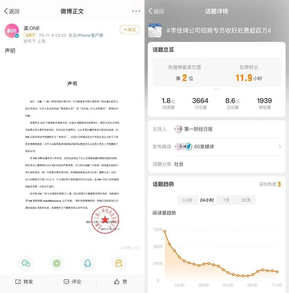 作为李佳琦背后的机构,美ONE与李佳琦“一荣俱荣、一损俱损”,尤其9月的“79元花西子眉笔事件”后,美ONE与李佳琦一样遭遇了一轮又一轮的“公关危机”。