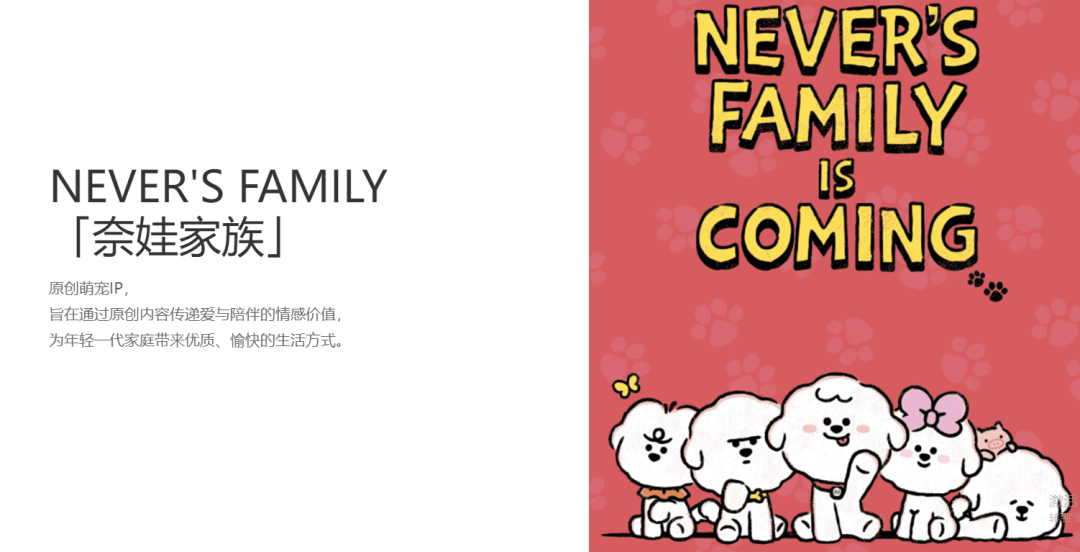 此外,李佳琦的宠物狗Never,凭借可爱的外表、会面对镜头拜拜的招牌动作走红,被粉丝称为“顶流女明星”,连带着狗狗一家都打开了知名度,推动了“奈娃家族”IP的诞生。