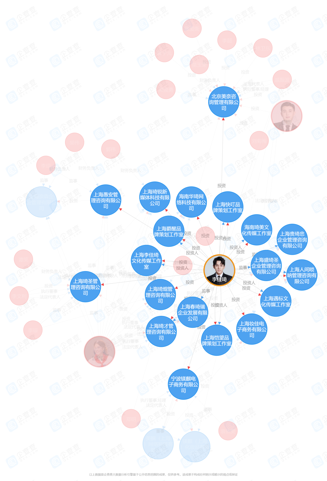 企查查数据显示,李佳琦目前对外投资了16家公司,是6家公司的法定代表人,涉及电子商务、文化传媒、网络科技、管理咨询等多种类型。