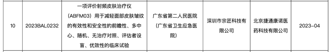 但在科学技术部于今年4月3日发布的《中国人类遗传资源国际合作临床试验备案情况公示(2023年3月17日至3月23日)》中,觅光品牌中ABFM03型号美容仪于今年4月份才申请临床备案。若按照正常Ⅲ类医疗器械注册周期推算,该型号美容仪在2024年4月并没有办法完成Ⅲ类医疗器械注册,无法取得Ⅲ类医疗器械证书。另外在相关网站中,也没有查到觅光当前大力推广的胶原炮二代产品的备案信息。