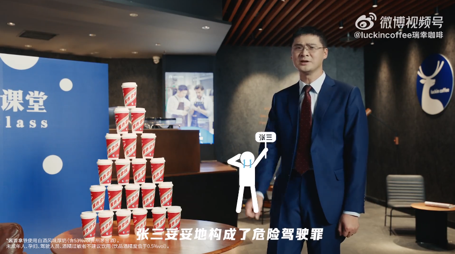 罗翔,一个以一己之力带动法学生学习热情的“法律界段子手”,他是中国政法大学教授,凭借他深入浅出的讲解,和那个一直游走在法律边缘的男主角“张三”被网友熟知,成为热门法律博主。被人称为“法律界的郭德纲”。入网仅两天就暴涨百万粉丝,如今拥有粉丝破2900万,无数人因为他而爱上刑法。瑞幸找罗翔担任「瑞幸答疑官 」,话题效果拉满,这次不仅是“美酒+咖啡”,还是咖啡+普法,将酱香拿铁的热度再次推上高峰。毕竟罗翔老师的粉丝和瑞幸的目标受众高度契合。他强大的路人缘和独有的幽默感,深受年轻人喜爱。在瑞幸这支视频中,罗翔以他风趣幽默的风格,为网友解答大众关心的问题:场景一:「张三劝李四喝酱香拿铁,一杯又一杯,一杯又一杯,最后导致李四酒驾,张三要担责吗?」