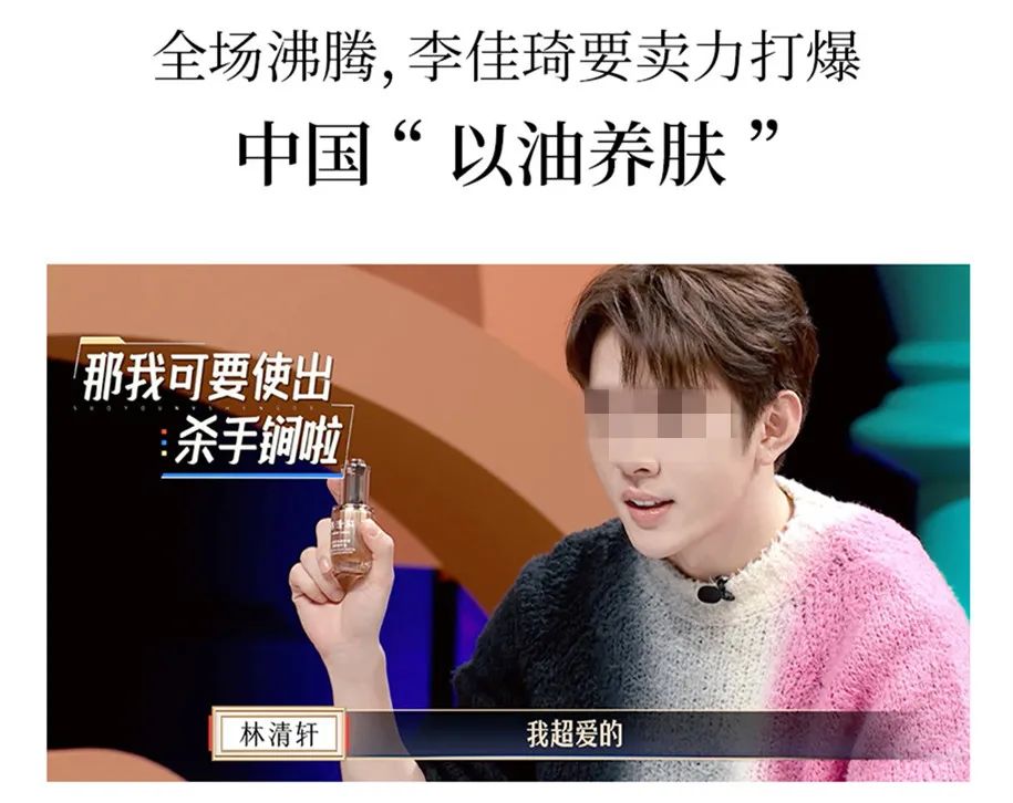 或是在李佳琦为了双十一推出的带货综艺《所有女生的offer3》中,他表示要打爆中国“以油养肤”:“让我们中国的山茶花开得更加红!”