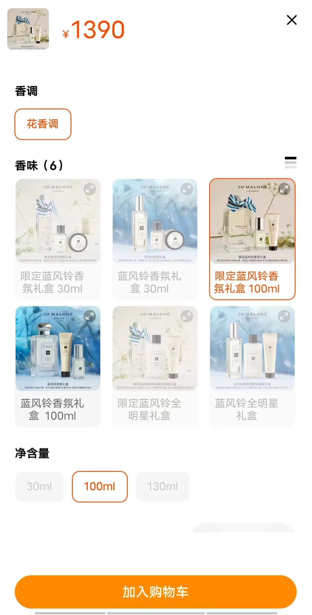 一直被吐槽香水贵的Jo Malone祖玛珑,限定款蓝风铃礼盒售价也只到1390元,拼不过林清轩。