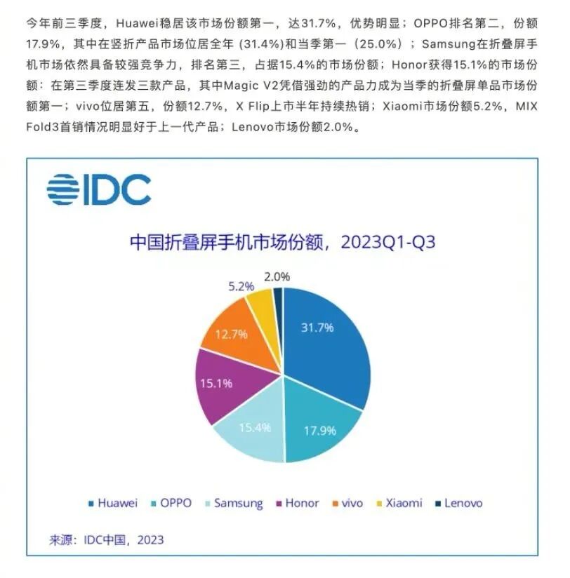 就如华为mate x3、mate x5,占据大折叠市场巨大份额,像极了“三年之期已到”、“龙王归来”的爽文剧情,另外,OPPO小折叠也成为了中国市场第一。