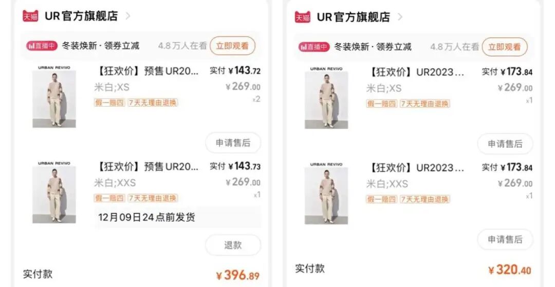 为求最低价,小羊也经历了“买了又退”,“原本是在旗舰店直接凑单,但后来发现直播间分享链接后可以领券,我又整单退了又买。”