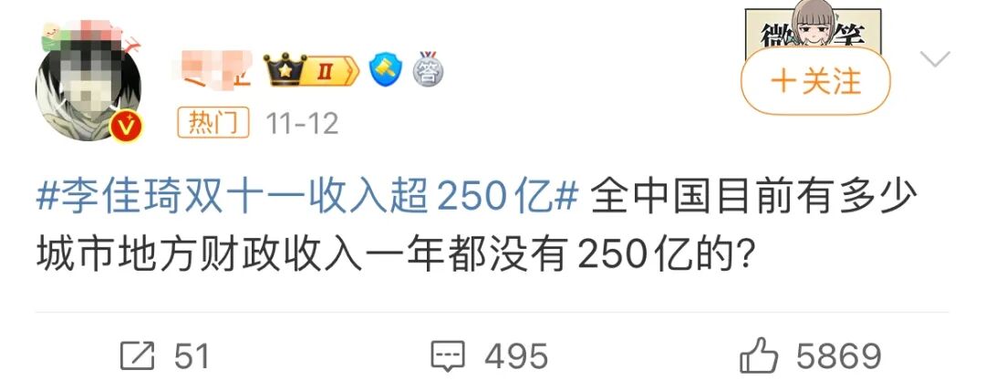 如果一个李佳琦一次双十一带货收入真能超250亿,那相当于以一人之力抵一个普通区县1年的GDP。