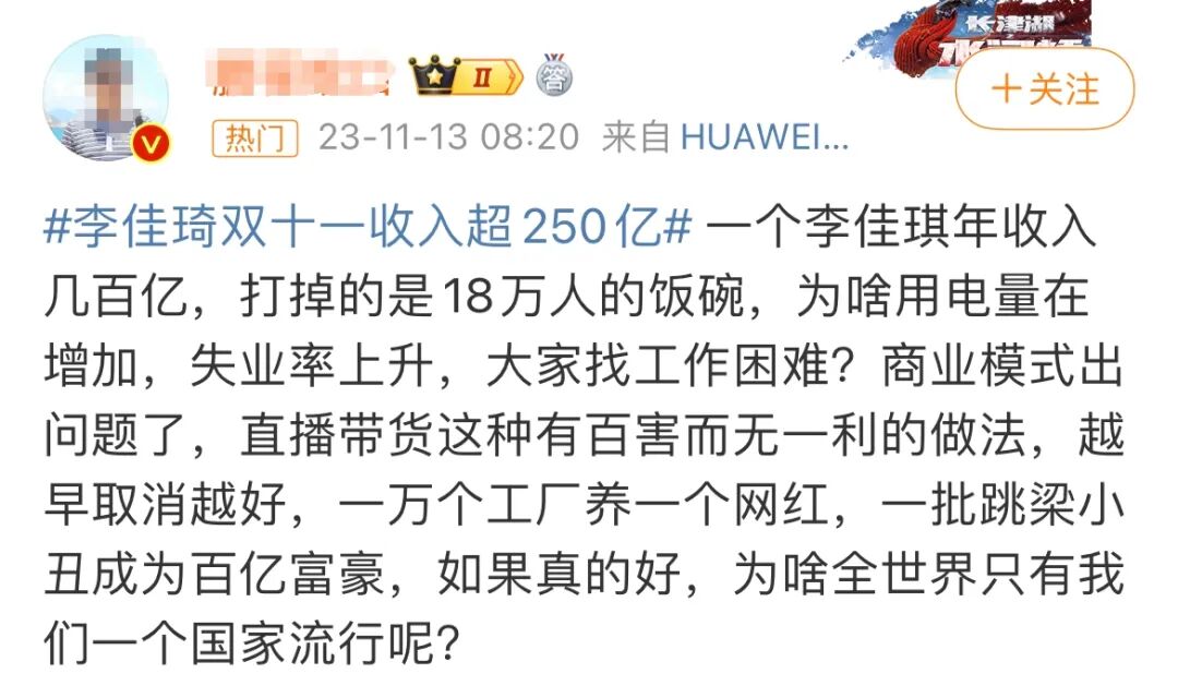 第二是强烈质疑超头主播模式的本质,几百号人抢了几十万人的饭碗,尤其破坏实体经济。