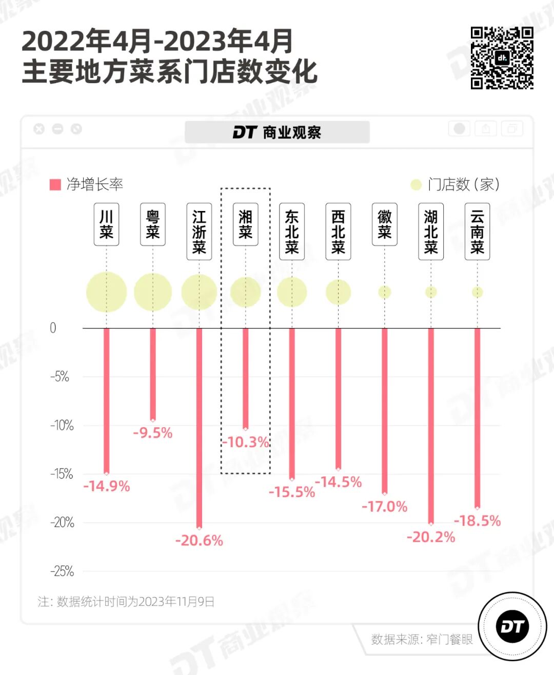 也就是说,近两年走火的湘菜,更多是靠“韧性”取胜——在餐饮行业普遍开店速度追不上闭店速度的艰难时期里,湘菜们硬是咬牙把日子过下去了。