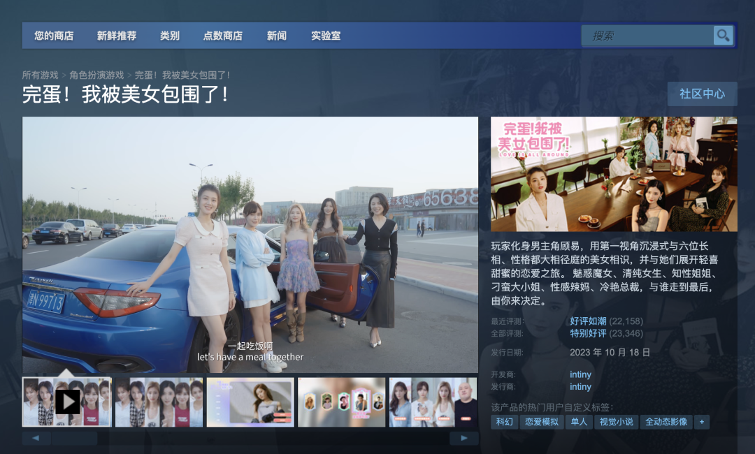 只需要花42元,就可以和6个美女谈恋爱!不久前,一款名为《完蛋!我被美女包围了》(以下简称《完蛋》)的真人互动影像游戏,凭借“爽文”剧情和互动玩法迅速冲上Steam国区畅销榜榜首位置,引发玩家和游戏从业者的关注。
