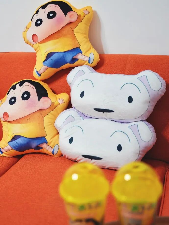 按照IP联名惯例,奶茶是其次,周边才是重中之重,自然少不了。分别有以小新和小白为设计原型的「超能抱」抱枕周边。