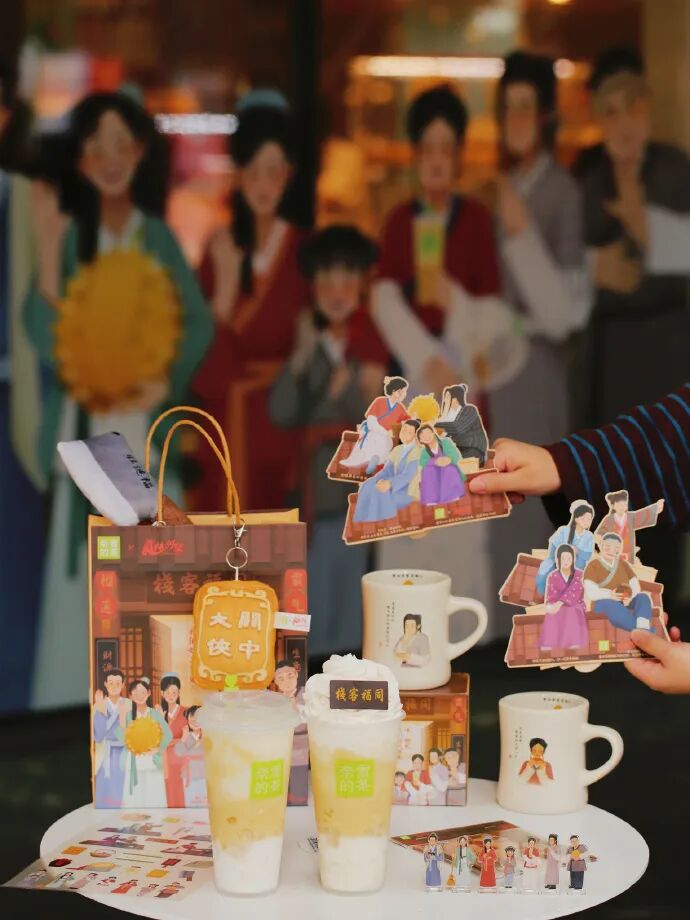 虽然几经波折,冒出“诈骗”疑云,但是仍然难挡杰迷的热情,联名首次爆卖146W+杯,刷新所有单品记录,再次见证了“回忆杀”的强大力量。不止周杰伦,奈雪的茶与《武林外传》联名也取得了巨大成功。奈雪结合剧集中第二十二回“榴莲果”为创作背景,宣布霸气榴莲强势回归。不仅定制核心元素和角色人物立牌周边,全国多个城市的奈雪门店还摇身一变“同福客栈”,佟湘玉、白展堂、郭芙蓉等熟悉的角色形象悉数出现,兼具创意和诚意,打动了无数观众的心弦。