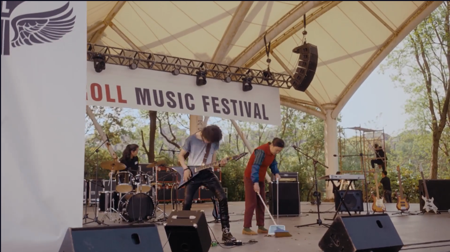 摇滚歌手总是在演唱会上一边弹吉一边甩头。