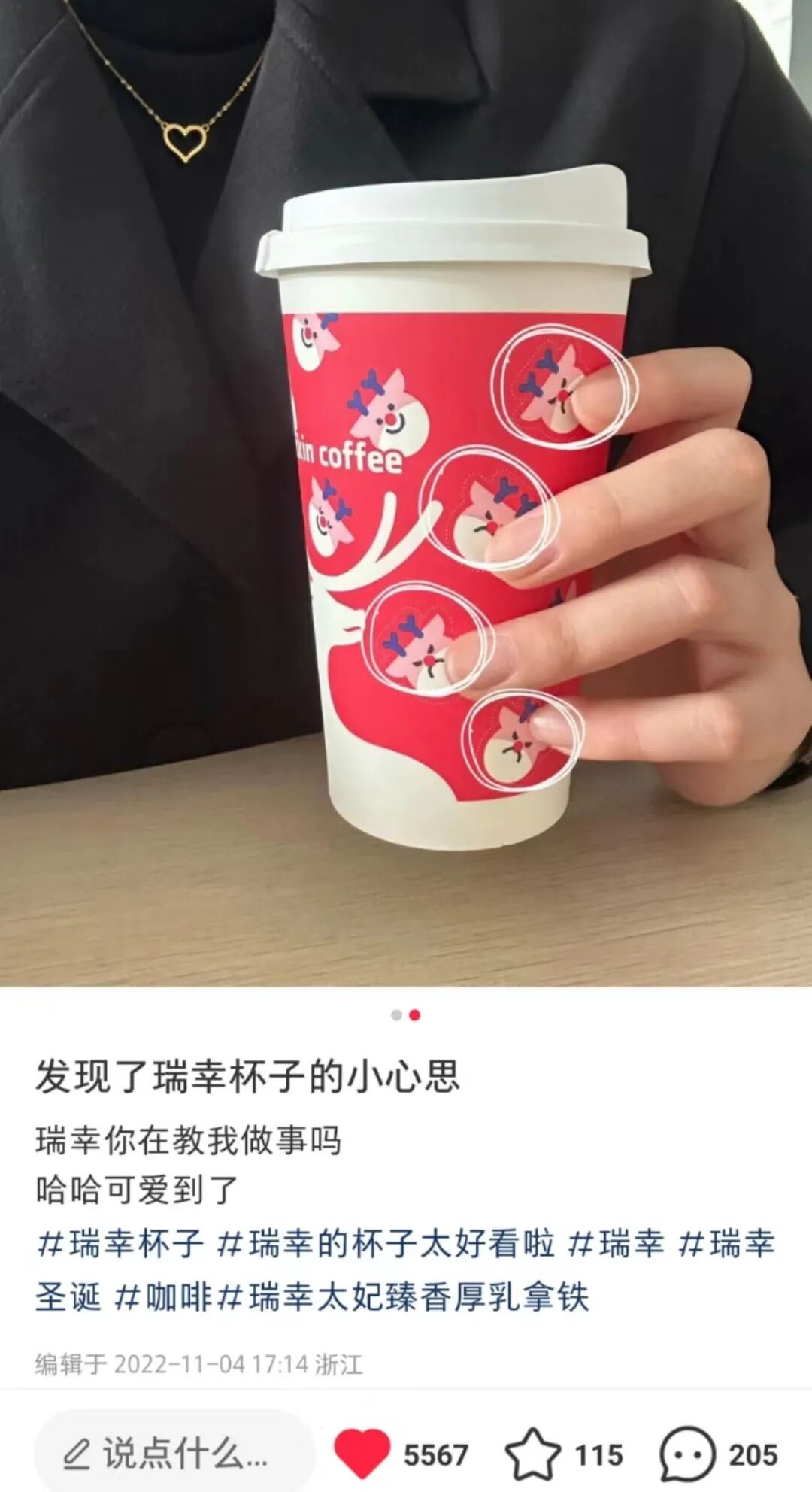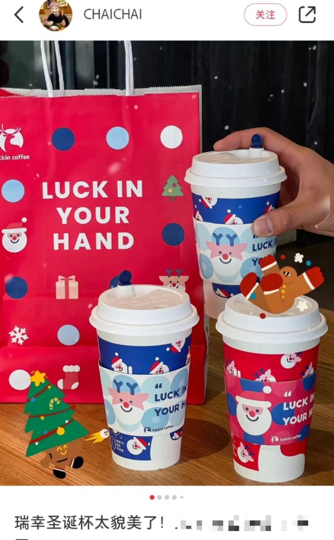 去年圣诞节,瑞幸也是同样如此,推出了圣诞限定主题杯。