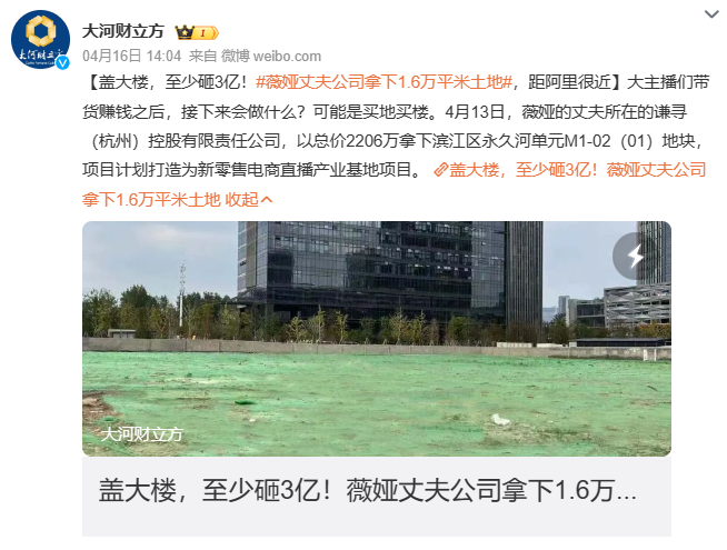 去年年末,小杨哥花1亿元买楼引发全网议论,彼时被网友戏称一个网红干掉了一个科技公司。无独有偶,今年4月,薇娅斥资3亿拿地建设新零售电商直播产业基地的消息也闹得沸沸扬扬。