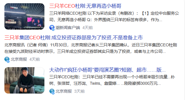 甚至在金融投资领域,三只羊集团还通过设立子公司进行私募股权投资,此次成立投资证券部,大概率也和此项业务有关。