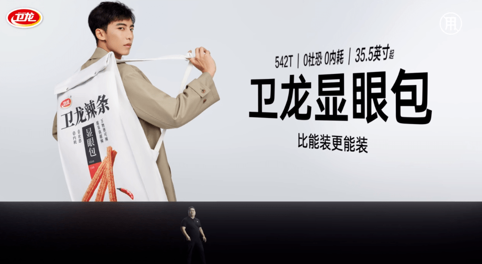 喜欢的人是“显眼包”,那么“显眼包”就是活泼外向、自带c位气场的人。讨厌的人是“显眼包”,那么“显眼包”就成了爱出风头的跳梁小丑。此梗最先是网友调侃邓超在华表奖和春晚舞台上的一些搞笑小动作,让人的目光不自觉就被吸引过去。当社恐社牛、i人e人社交话题引起广泛热议时,同为亲戚的“显眼包”自然也沾到了光,深受网友喜爱。“显眼包”适用于social话题传播,卫龙就曾以“显眼包”为题,举办了一场别开生面的新品发布会内涵苹果,展现了品牌年轻化、会玩的品牌内核,给大众带来新鲜感。