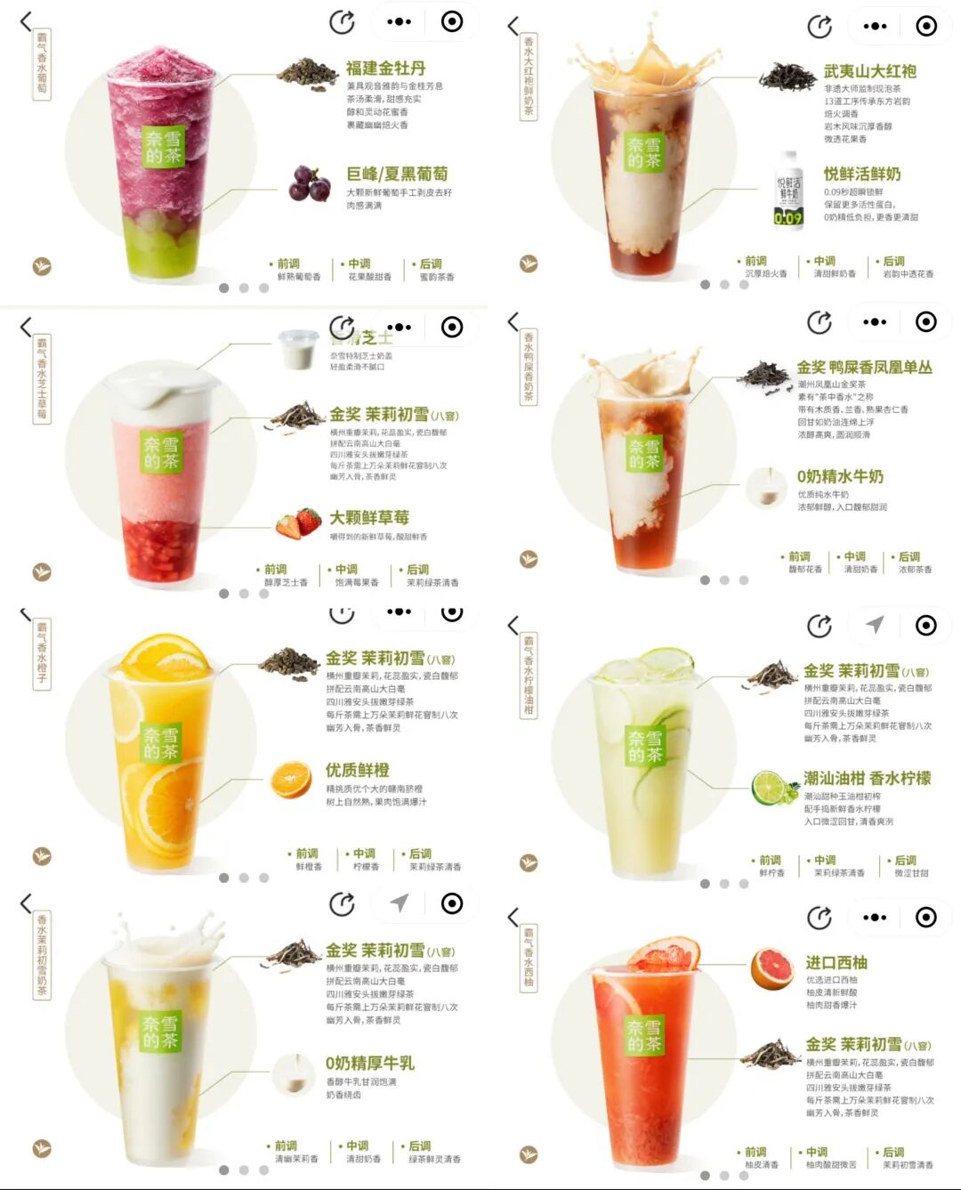 寻香中国茶的文化营销。比如奈雪今年推出“寻香中国茶”项目,奈雪目前已推出6期,发掘不同产地的好茶,打造龙井奶茶、一朵莲奶茶、茉莉初雪、栀子绿茶、桂花铁观音、状元大红袍鲜奶茶等产品。此外,奈雪还牵手“西湖龙井非遗传承人”樊生华、“大红袍制作技艺非遗传承人”刘安兴等大师监制并推广传统茶文化。