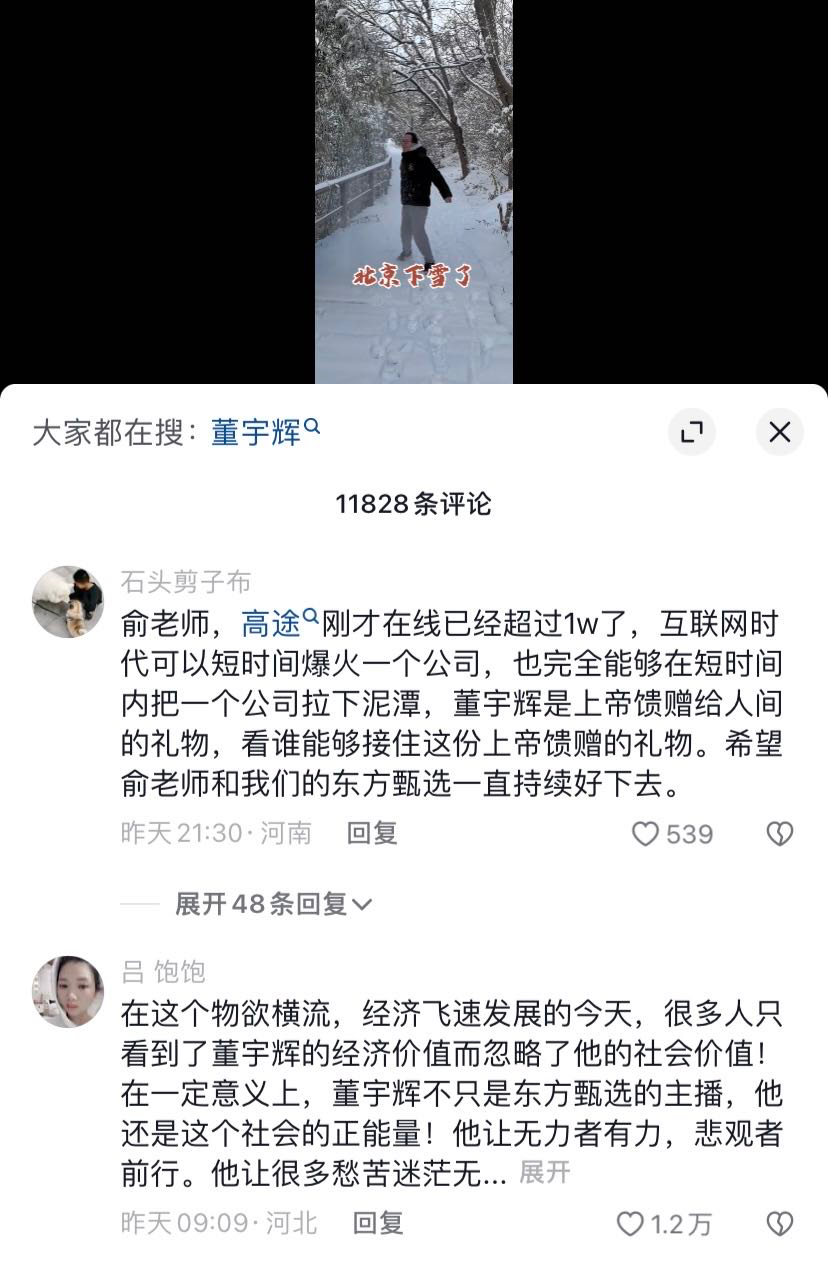 小编的回应没能过董宇辉粉丝这关,还是坚信文案就是出自董宇辉之手,认为东方甄选此举是在“背刺”董宇辉。就在近几天,这些粉丝在东方甄选的抖音评论区四处征战,为董宇辉讨回公道“你们负了董宇辉”“我只看董宇辉,大号已取关”。