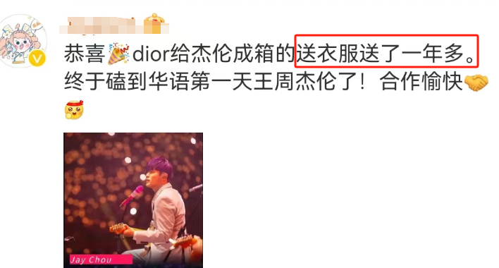 据说迪奥给周杰伦演唱会送衣服送了整整一年,海澜之家看了都得汗流浃背。