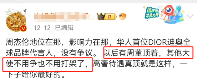 难怪网友调侃这次“泼天的富贵轮到了迪奥,迪奥实属是高攀了”,哪怕迪奥给杰伦的title不是中国护肤大使、中国彩妆大使,而是史上第一位中国籍全球品牌大使。