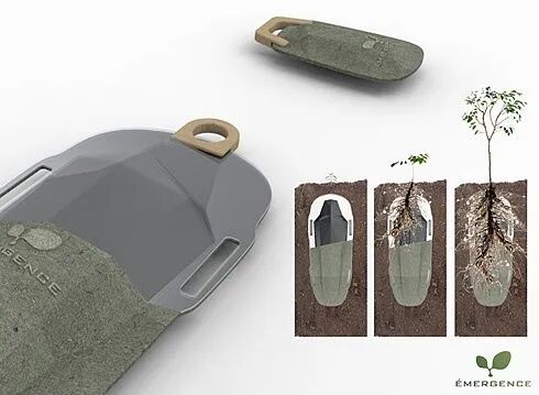 随着时间流逝,棺材里的植物种子也会发芽成长,最后变成一颗纪念之树。以这种浪漫的方式,具像化诠释“死亡是另一种新生”。