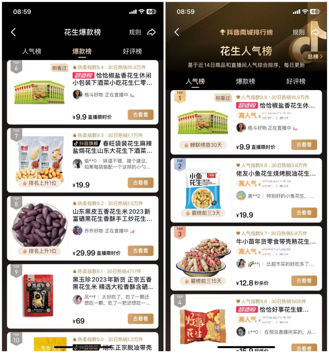 虽说近几年,洽洽不断发力除瓜子类的其他坚果产品。近期推出的花生类产品,也直接冲到抖音爆款第6以及人气榜第一。