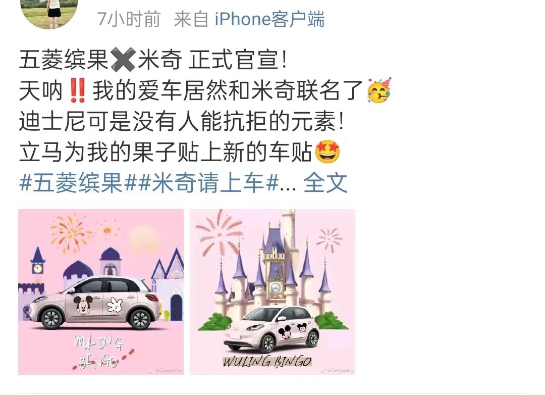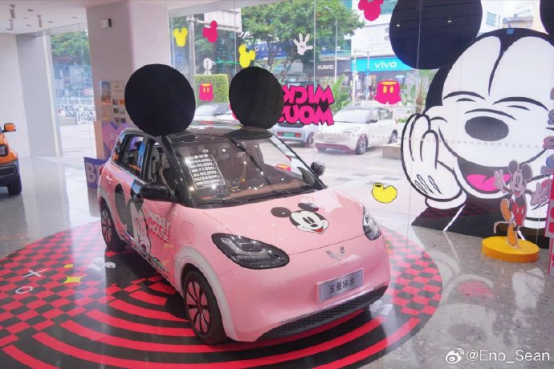 最近,五菱旗下主打城市代步需求的a0级小车五菱缤果,与迪士尼大IP米奇梦幻联动,带来了一次童心满满的跨界。此次合作,双方会将将诸多迪士尼米奇的创意元素融入五菱缤果,同时打造多款迪士尼米奇系列周边,带给用户更缤纷、更奇妙的出行体验。米奇是迪士尼最知名的IP形象,它伴随着第一部有声动画《威利号汽船》横空出世,至今已有95年历史,出现在超过130部电影中,陪伴了一代又一代人的童年。而五菱缤果自今年3月份上市以来,凭借高颜值、大空间、硬核配置,收获了超18万用户的青睐。“造梦”的迪士尼X“为人民造车”的五菱汽车,汇聚梦想与现实,碰撞出奇妙的火花。丰富的米奇车贴,让用户能够自主diy汽车外观。米老鼠圆圆的大耳朵,与复古圆润的五菱缤果汽车搭配在一起,把可爱的气质发挥到了极致,让这次跨界吸睛十足。不仅外观上足够吸睛,五菱还将这次跨界打造成了一次话题营销。五菱抓住年轻人喜欢玩梗的特质,让五菱缤果的新衣在互联网上掀起讨论热潮。