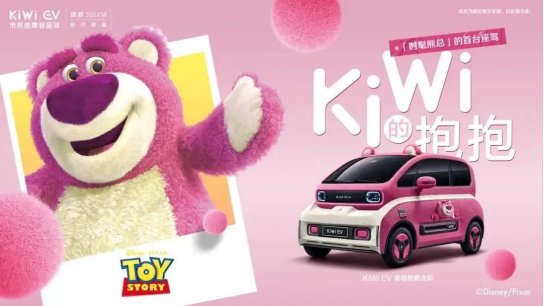 此前,五菱旗下主打时尚、前卫的宝骏微型电动车KiWi EV与草莓熊跨界合作,俘获了许多人的少女心。KiWi EV草莓熊车的整个车身都被毛绒材质包裹,侧身装饰着立体草莓熊装饰,车顶是草莓熊耳朵,尾部还有小尾巴,把汽车打造成了一只大大的草莓熊玩具。汽车的内饰装饰,也采用了毛绒绒的草莓熊同色系材质包边,是猛男也抵挡不住的诱惑。还有五菱联动迪士尼推出的五菱NanoEV迪士尼疯狂动物城限定款,定位为“CoupleCar”,呼应着尼克和朱迪这对广受欢迎的cp,为五菱收获了不少cp粉的喜爱。作为主题乐园领域的超级品牌,迪士尼自带的光环效应,无疑会在一定程度上提升跨界合作品牌的声量,放大品牌势能。更重要的是,迪士尼旗下的动物IP形象,本身就是引人关注的视觉符号,拥有令人难忘的主题色和形象特征,因此,跨界其实也意味着两种不同领域设计的交融。精工制造的汽车与可爱的动物IP,组合在一起构成外观独特的产品形象,其本身就是一个营销的爆点,当暴露在社交环境与人际网络当中,便有机会像病毒一样传播和扩散,在短时间内曝光给更多的受众。而每一次跨界所积攒的关注,都在为下一次的跨界蓄力,每一款联名限定车型,都是无可替代的品牌资产。五菱在一次次跨界中,持续放大营销价值,沉淀品牌资产。本文由首席营销官入驻KOL授权发布,转载请联系该作者