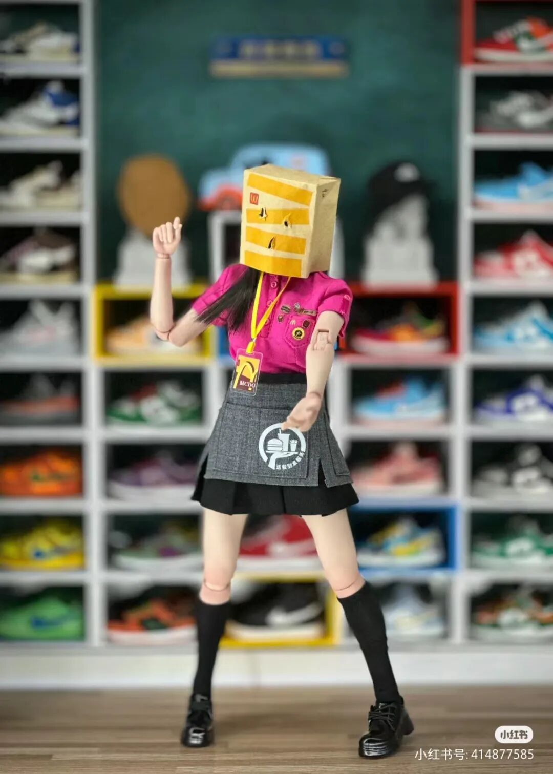 其中最炸裂的当属麦当劳小姐姐制服,粉色制服上衣、黑色短裙、小皮鞋、中筒袜一配,那叫一个制服诱惑。