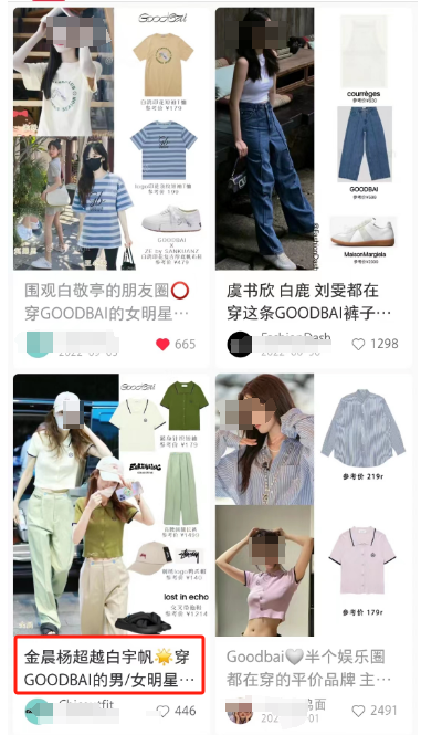 GOODBAI还是半个娱乐圈都在穿的品牌,刘雯、虞书欣、金晨、赵丽颖等都曾“代言”。